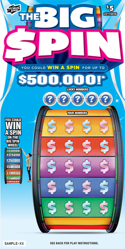 The Big Spin has Top Prizes up to $500,000 and there are several ways to win. First, players scratch for the chance to win either an instant prize ranging from free tickets or cash up to $10,000, or a “spin” prize. If the ticket reveals a “spin” prize, players can check their ticket at a lottery retailer or on the BCLC! Lottery App to view an animated spin wheel to reveal their prize. Every spin is a guaranteed win, and players either win a cash prize or the “Big Spin.”