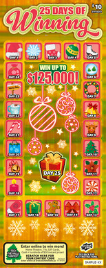 25 Days of Winning | PBL | Find | $10 | 250,000 | 1 in 3.10 | $125,000 |