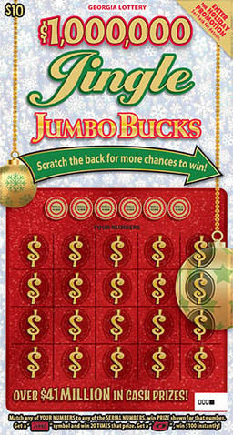 $1,000,000 Jingle Jumbo Bucks | SG | Key Number Match | $10 | Â 6,240,000 | 1 in 3.26 | $1,000,000 |