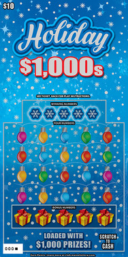 Holiday $1,000s | SG | Key Number Match | $10 | 360,000 | 1 in 3.63 | $1,000 |