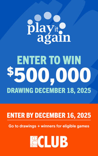 Play It Again offers players cash drawings three times a year with prizes that range from $250,000 to $500,000; every non-winning scratch ticket is eligible for Play It Again entries. Points for Drawings offers prizes that include, but are not limited to, gift cards from major retailers, outdoor packages, televisions, Apple tech bundles, kitchen items, and luxury accessories. Players may enter these prize drawings with points they earn from entering winning and non-winning draw tickets and non-winning scratch tickets into The Club.